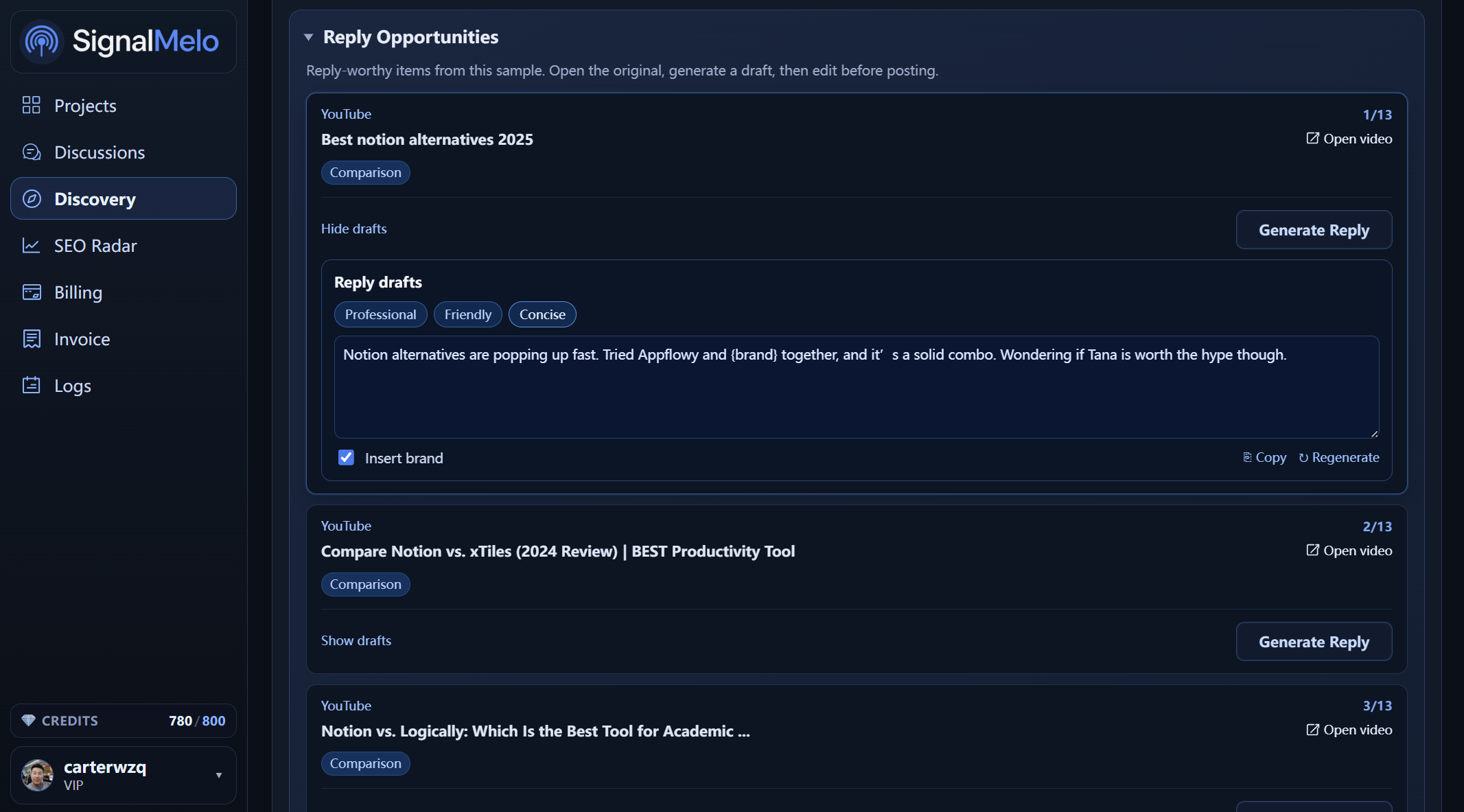 Monitor conversations across communities, short-form video, and search. SignalMelo filters noise with AI so your team focuses on reply-ready opportunities—not endless feeds.